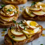 Indulge in the delightful fusion of flavors with these Apple & Brie Crostini with Hot Honey. Perfect for any gathering, these elegant bites feature creamy brie cheese layered on crispy baguette slices and topped with fresh apple, savory turkey, and a drizzle of spicy honey. Whether you’re hosting a holiday feast or a casual brunch, these crostini are quick to prepare and sure to impress your guests.