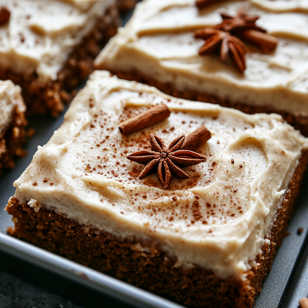 - Spread frosting over cooled cake and garnish with extra cinnamon or chopped walnuts if desired.
