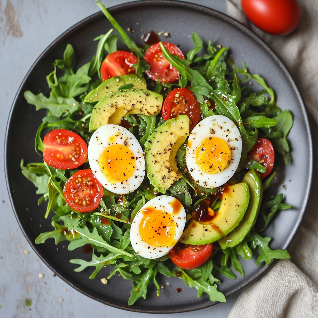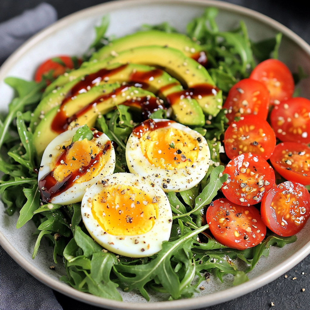 How to Perfect Avocado Arugula Salad with Jammy Eggs & Creamy Balsamic Drizzle