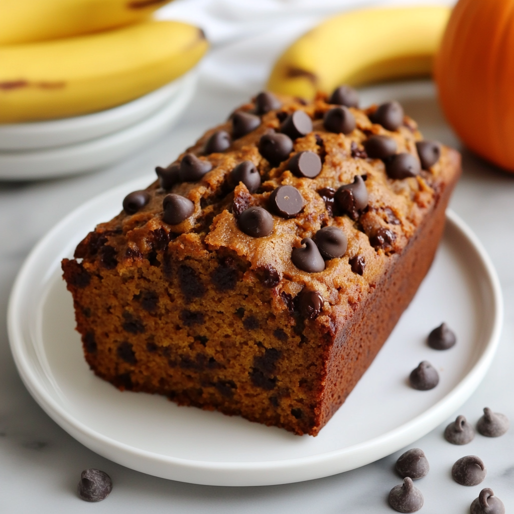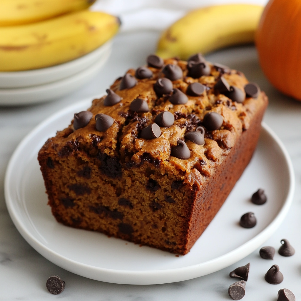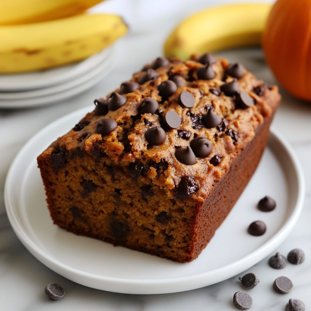 Indulge in the warm, comforting flavors of Banana Chocolate Chip Pumpkin Bread—a delightful fusion that makes every bite a treat.