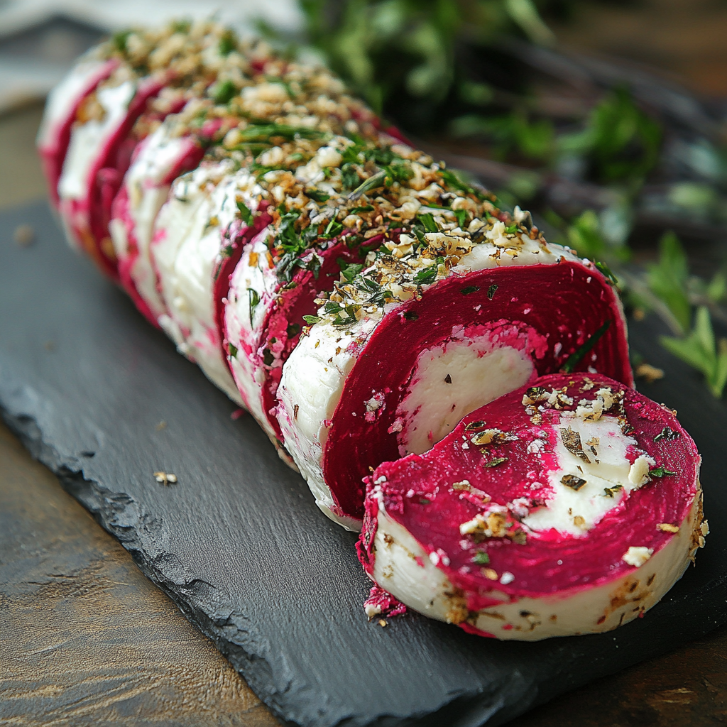 A Beet and Goat Cheese Log is a vibrant appetizer made from roasted beets mixed with creamy goat cheese, often enhanced with fresh herbs.