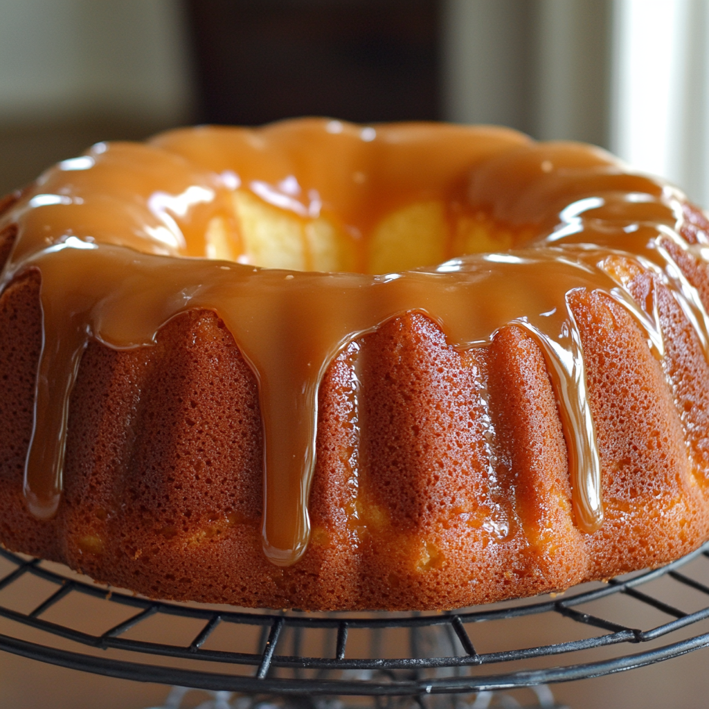 Insert a toothpick into the center of the cake; if it comes out clean, your Caramel Cream Cheese Pound Cake is ready!