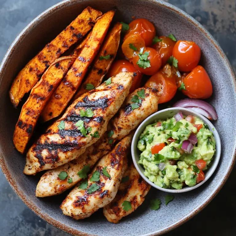 Grilled Chicken with Sweet Potato Fries & Chunky Guac