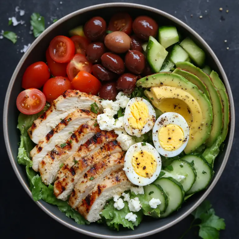 Mediterranean Chicken & Egg Salad Bowl with Avocado & Feta