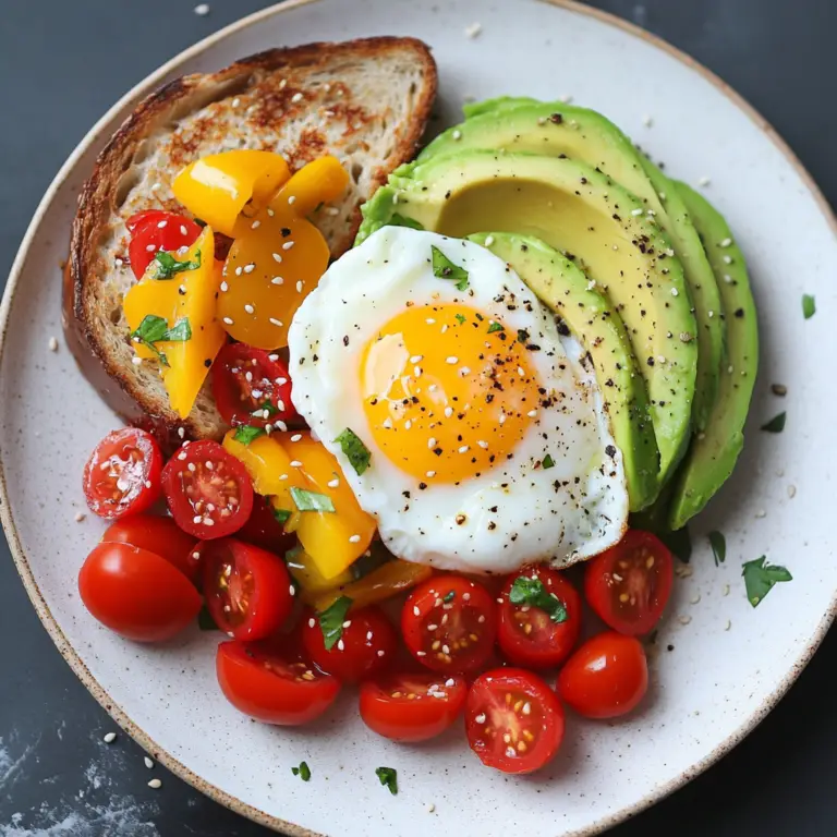 Poached Egg & Avocado Brunch Plate with Roasted Peppers