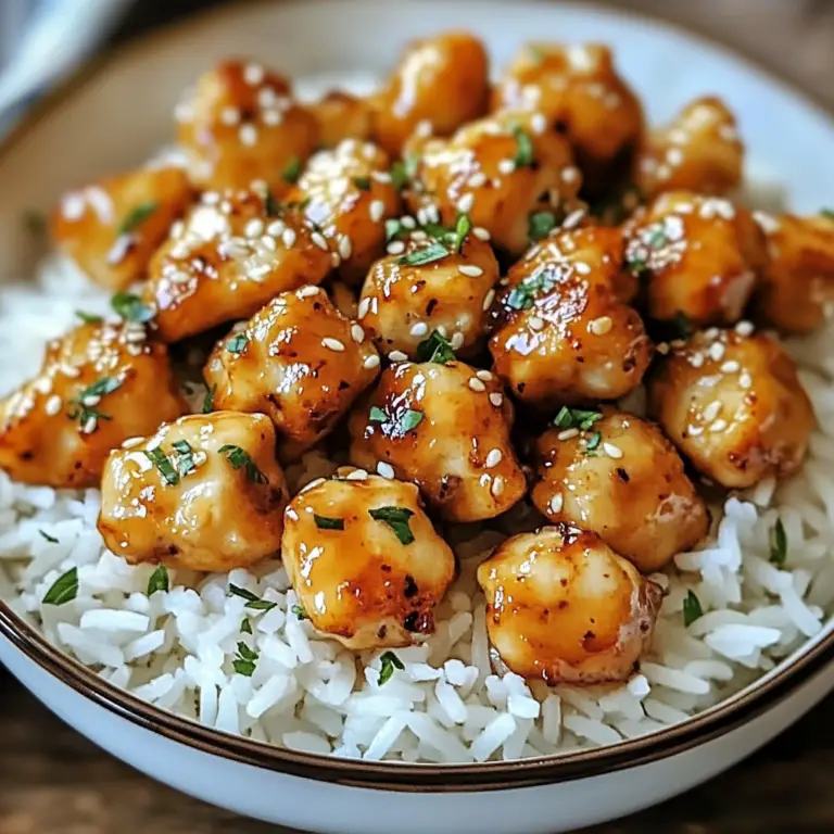 Honey Garlic Chicken Bites Over Creamy Rice