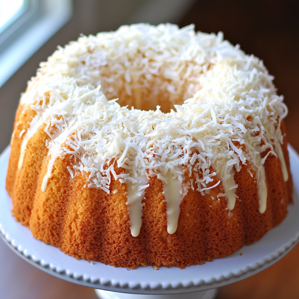 - Beautiful Presentation: The drizzled glaze and toasted coconut topping make this cake visually stunning.