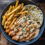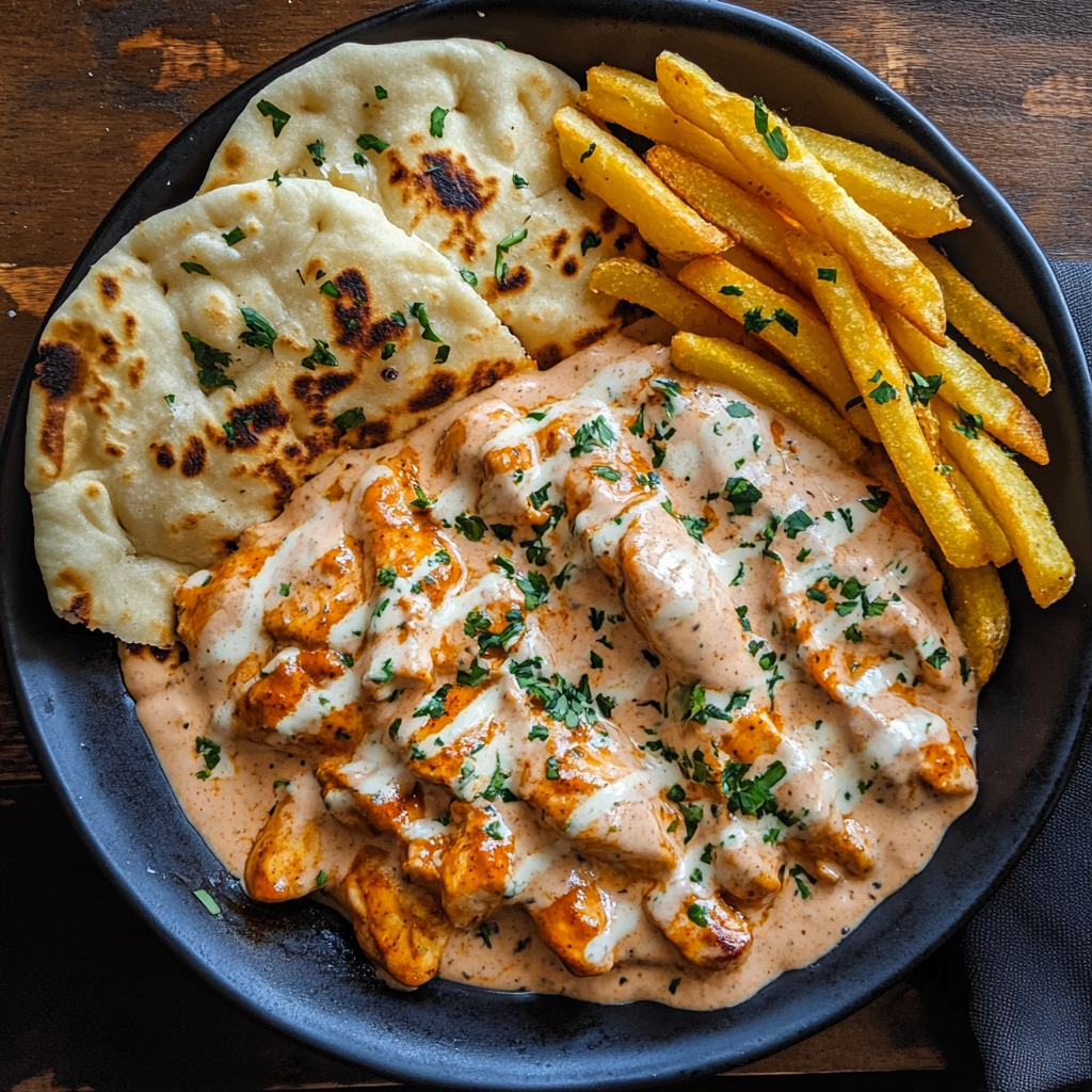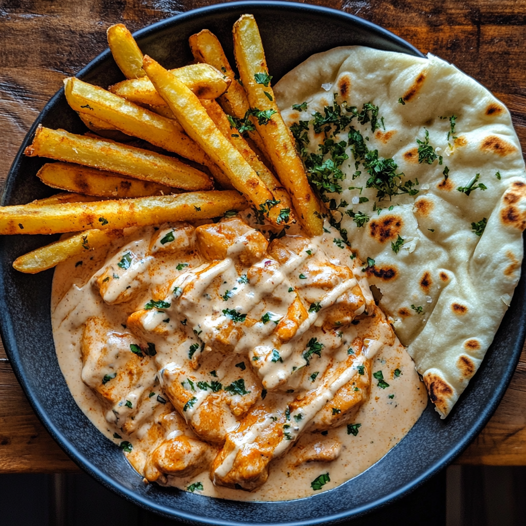 Creamy Butter Chicken with Garlic Drizzle, Golden Fries & Warm Naan is a mouthwatering dish that brings the vibrant flavors of Indian cuisine right to your dining table. This recipe features tender chicken simmered in a rich, creamy sauce infused with aromatic spices. The garlic drizzle adds an irresistible twist, making it perfect for family dinners or entertaining guests. Matched with crispy golden fries and warm naan, this meal promises to please even the pickiest eaters. Easy to prepare in under an hour, it’s ideal for both weeknight dinners and special occasions.