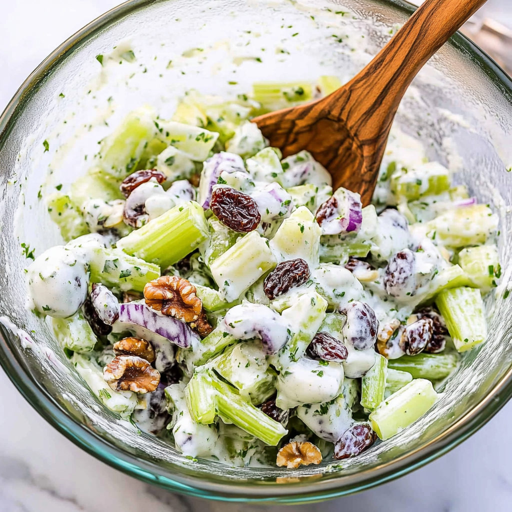 How to Perfect Creamy Celery Salad with Walnuts and Raisins