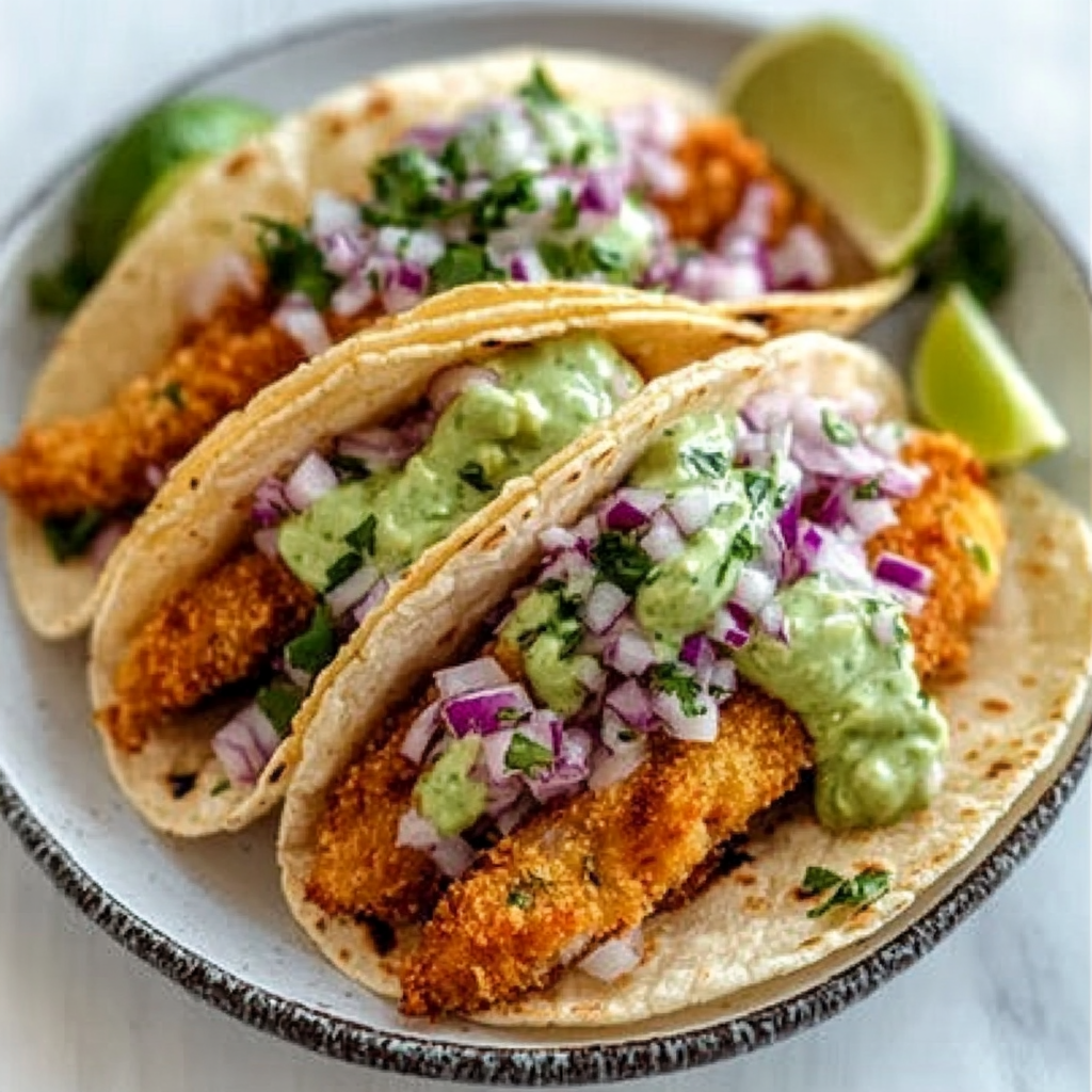 Crispy Baja Fish Tacos with Avocado Crema