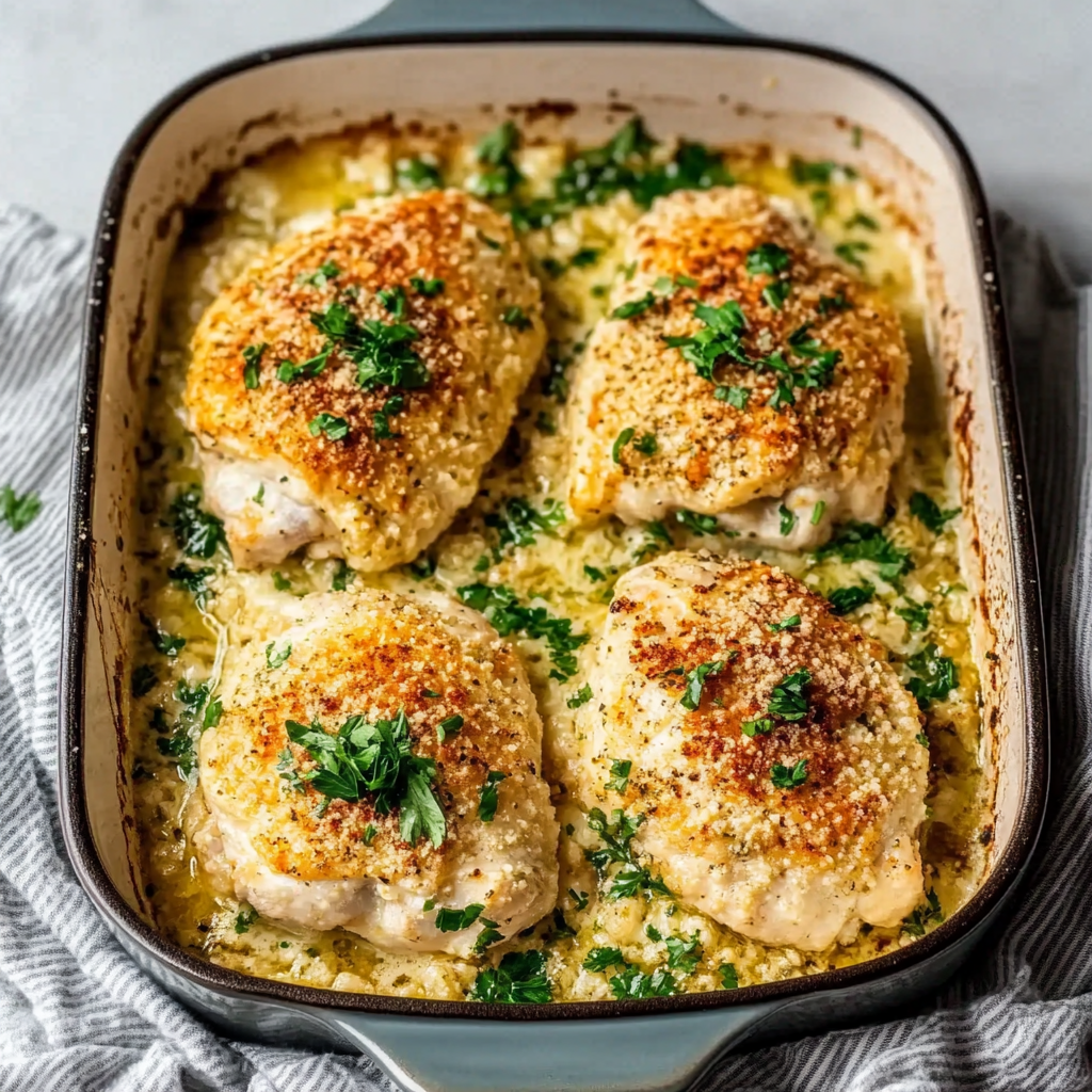 Place the baking dish on the center rack of your preheated oven. Bake for about 25 to 30 minutes or until the chicken is cooked through and topping is golden brown. If needed, tent the dish loosely with foil if browning too quickly. The chicken is ready when its internal temperature reaches 165°F.