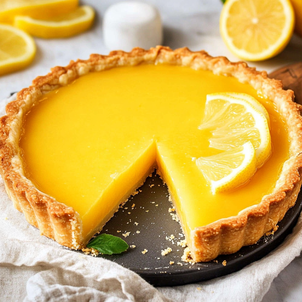Indulge in the vibrant and refreshing flavors of this French Lemon Tart with Lemon Curd. This dessert features a buttery pastry crust that perfectly cradles a zesty lemon curd filling. Ideal for any gathering, from casual brunches to sophisticated dinner parties, it is sure to impress your family and friends. With a beautiful golden crust and glossy finish, this tart not only tastes delightful but also makes an eye-catching centerpiece. Enjoy it chilled or at room temperature, and don’t hesitate to customize it with fresh berries or a dollop of whipped cream for added flair.