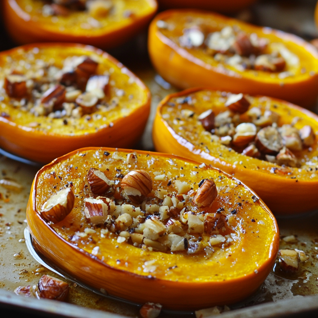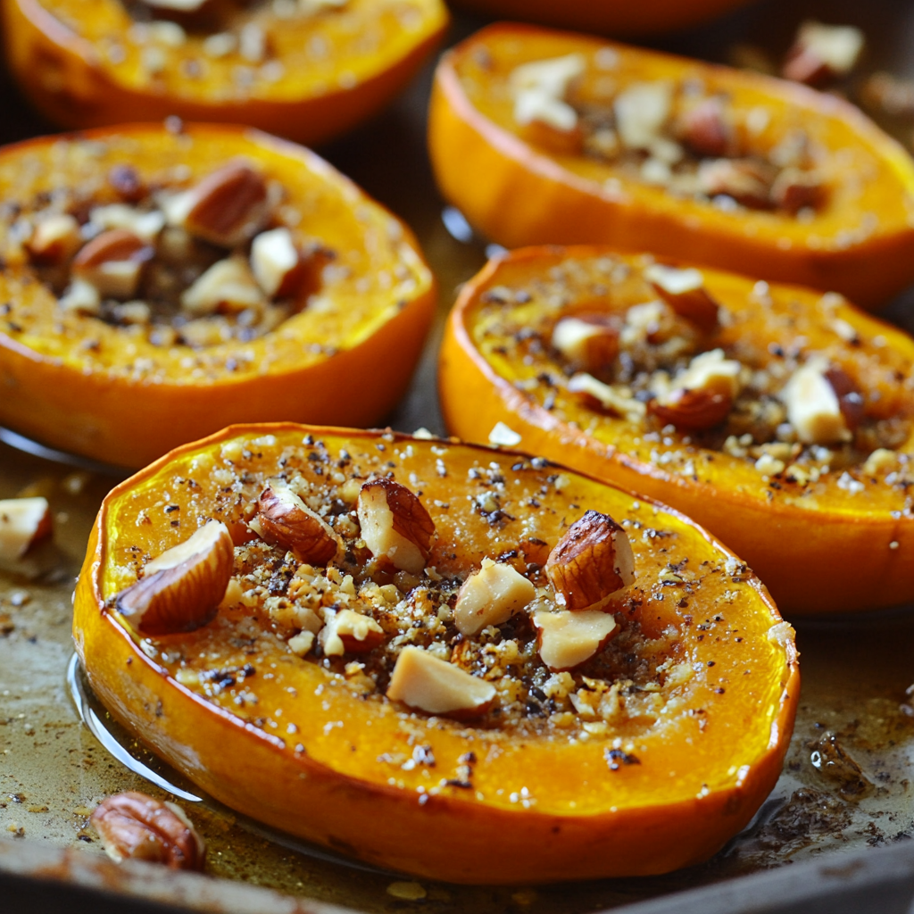 - Drizzle the mixture generously over each squash half, ensuring it pools in the center.