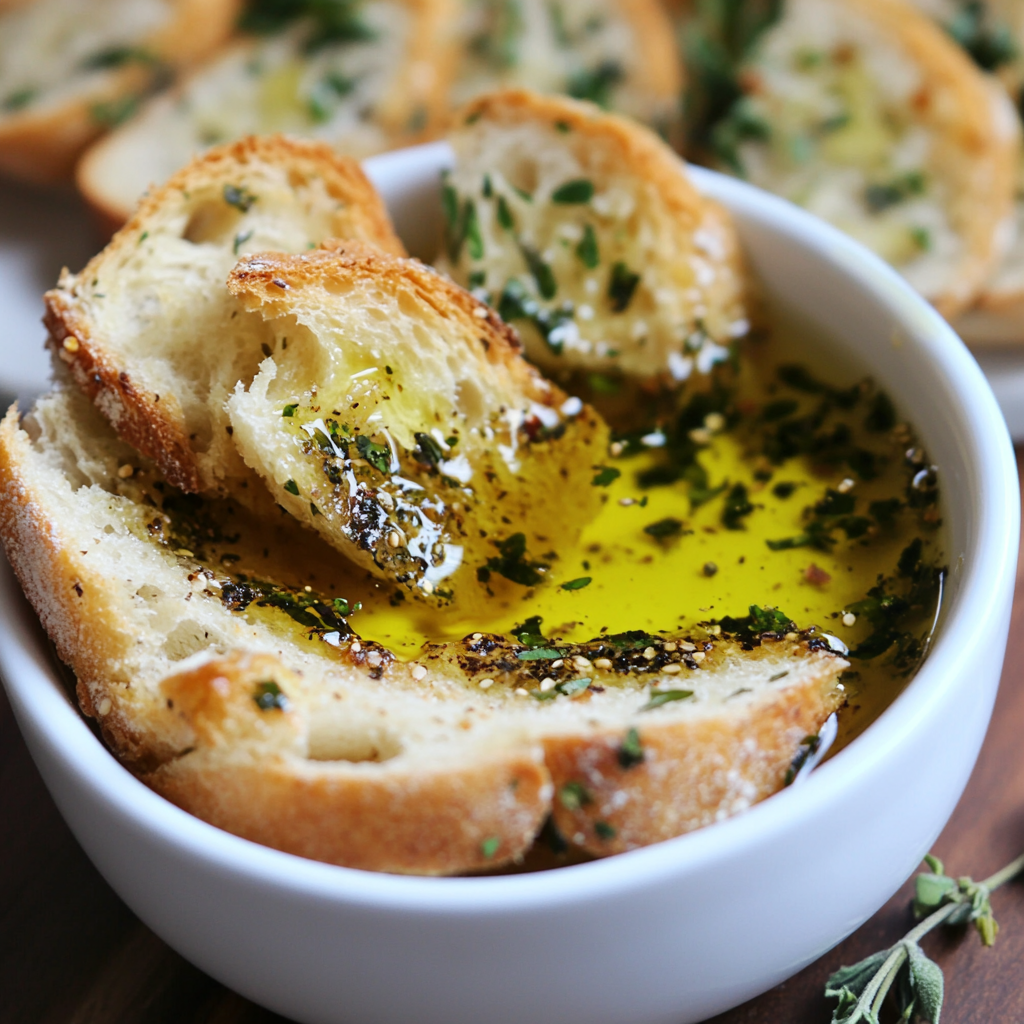 Olive oil bread dip is a flavorful mixture of olive oil infused with garlic, herbs, and balsamic vinegar, ideal for dipping fresh bread.