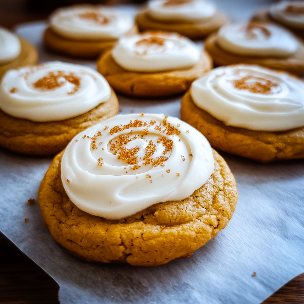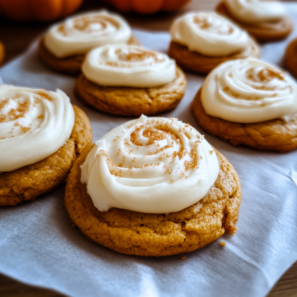 These cookies blend warm spices and pumpkin flavor, topped with creamy frosting, making them perfect for fall gatherings.