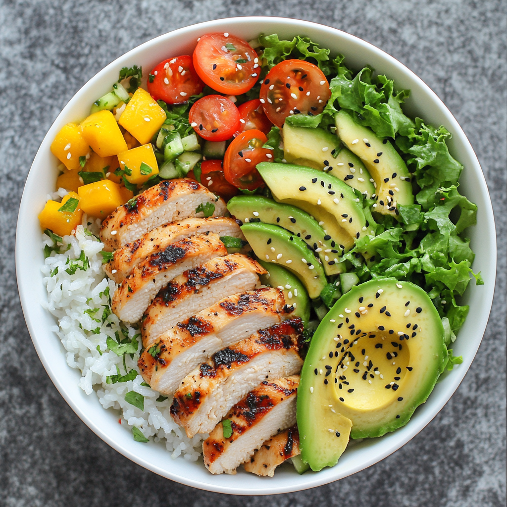 To make it vegan, substitute grilled chicken with marinated tofu or chickpeas and skip the avocado if desired.