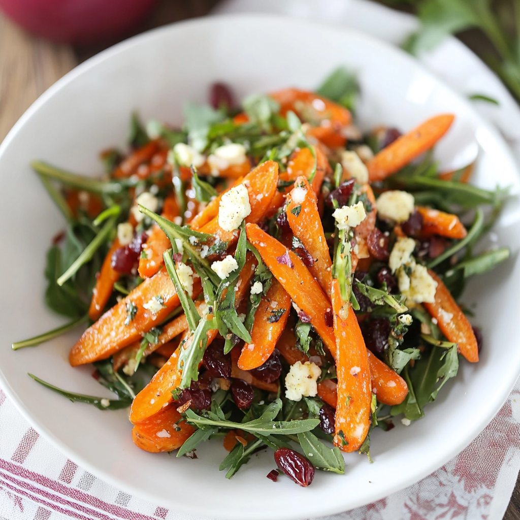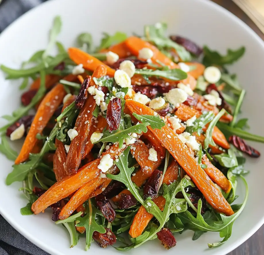 Arugula, blue cheese, dried cranberries, almonds, and roasted carrots come together to create this delicious and fresh Roasted Carrot Salad. This vibrant dish is perfect for any occasion, from a casual lunch to an elegant dinner party. The combination of sweet roasted carrots and tangy blue cheese offers a unique flavor profile that will impress your guests while being easy to prepare.