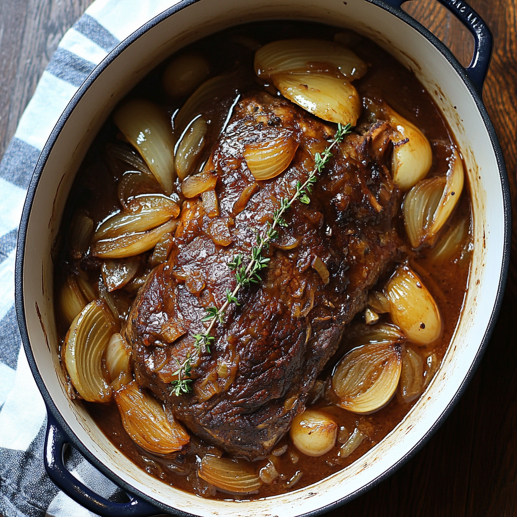 This recipe combines tender pot roast with sweet caramelized onions, creating a rich and comforting meal perfect for any occasion.