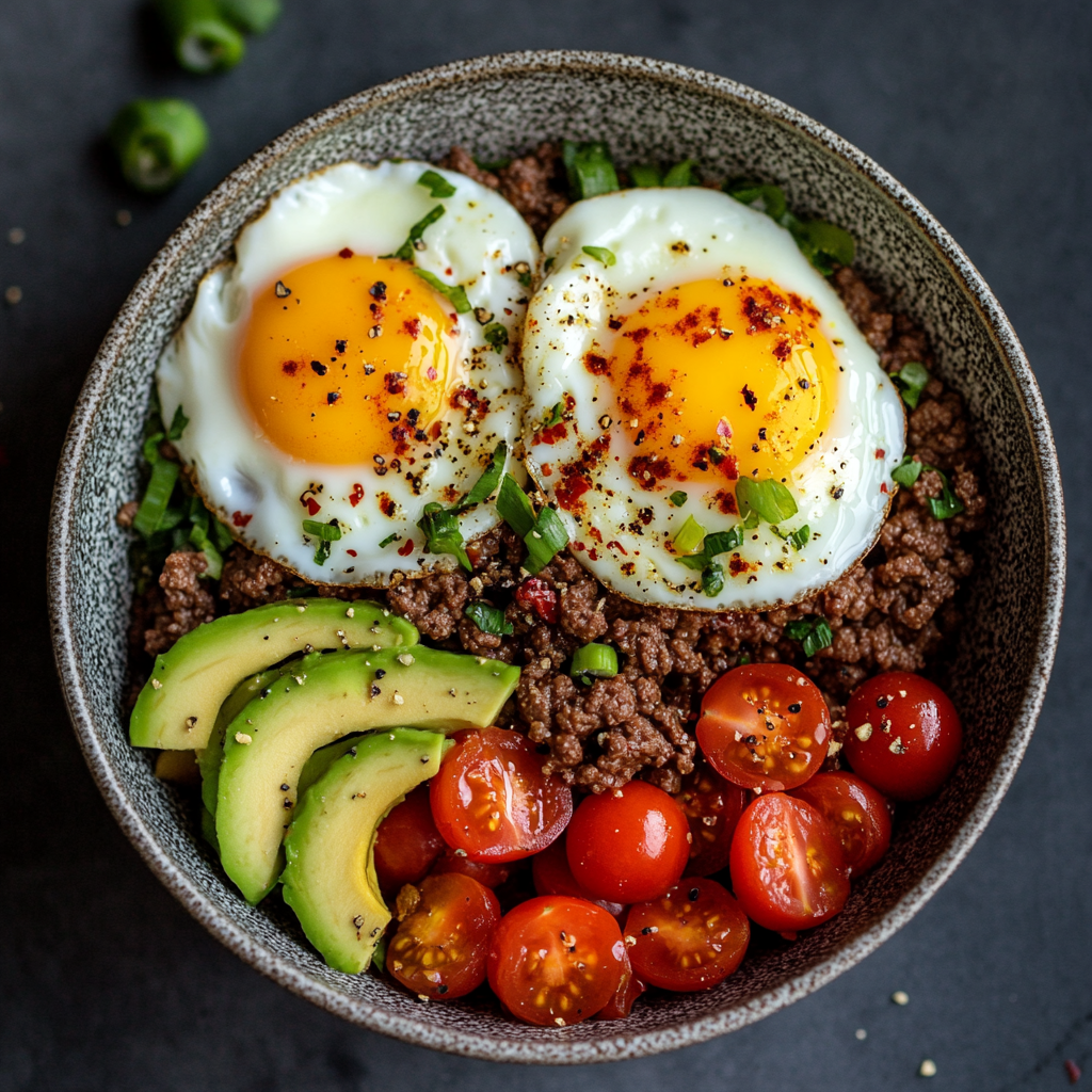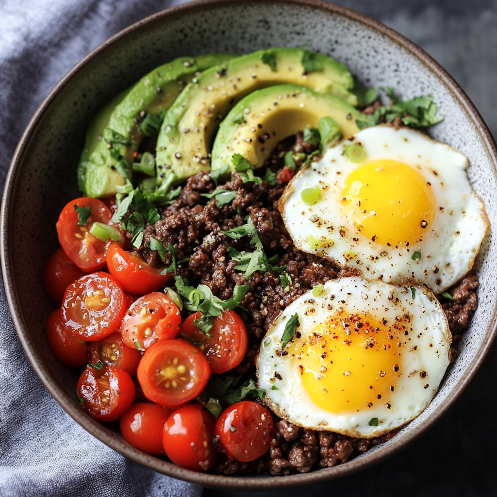 - Nutrient-Dense: Loaded with protein from beef and eggs, plus healthy fats from avocado.