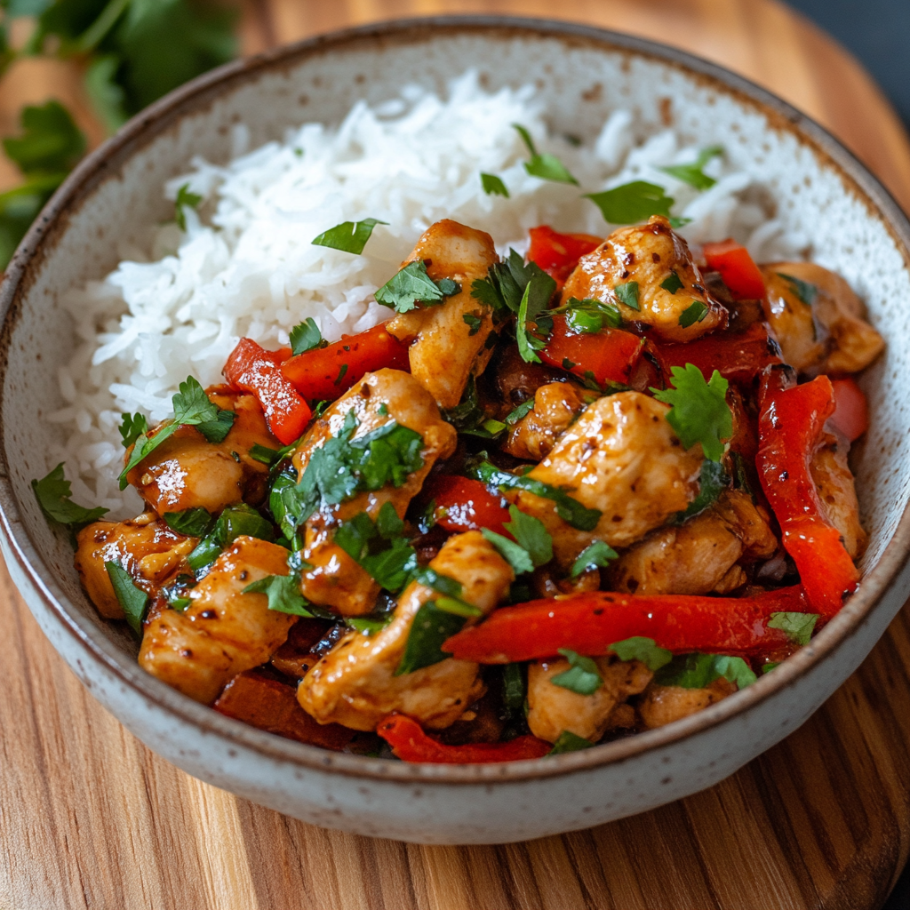 Spicy Pepper Chicken Stir-Fry with Rice