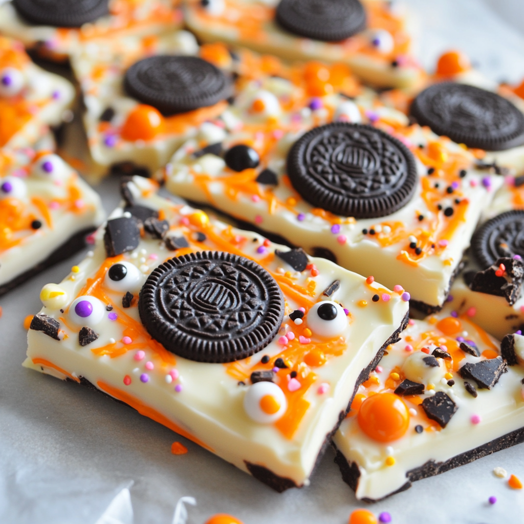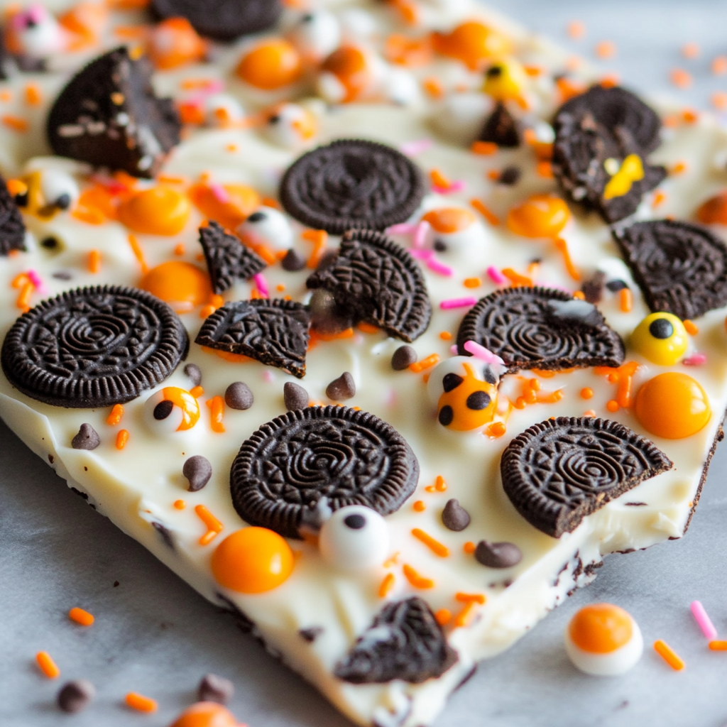 This Spooky Halloween Oreo Bark is a fun and festive treat that captures the spirit of Halloween with its bright colors and delicious flavors. Perfect for parties, school events, or just a spooky night in, this easy-to-make dessert combines the classic taste of Oreos with white chocolate and festive candies. Its unique combination of textures and flavors makes it a standout choice for any Halloween celebration.