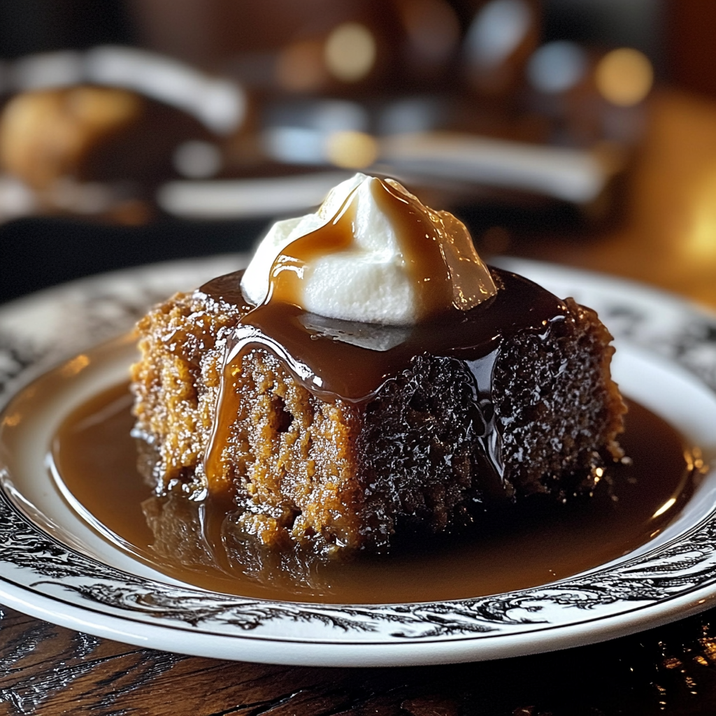 Sticky Toffee Pudding is a moist cake made from dates, drenched in a rich caramel sauce, and often served with whipped cream or ice cream.