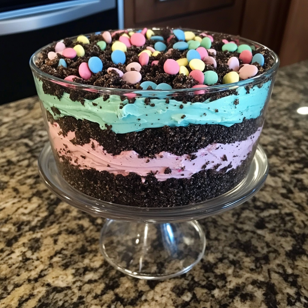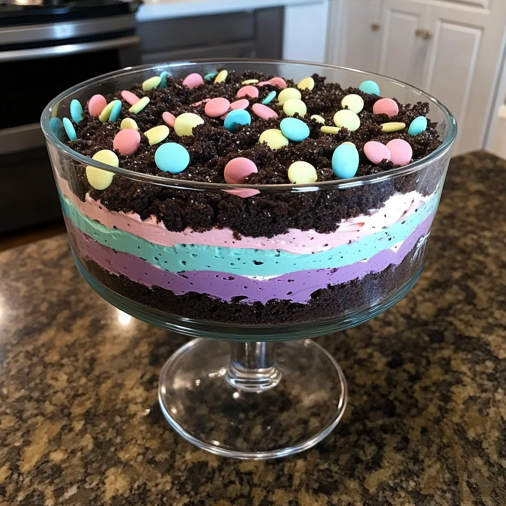 - Consider adding a themed topper for special occasions like Easter. Use candy eggs or edible flowers to enhance the visual appeal of the dirt cake.