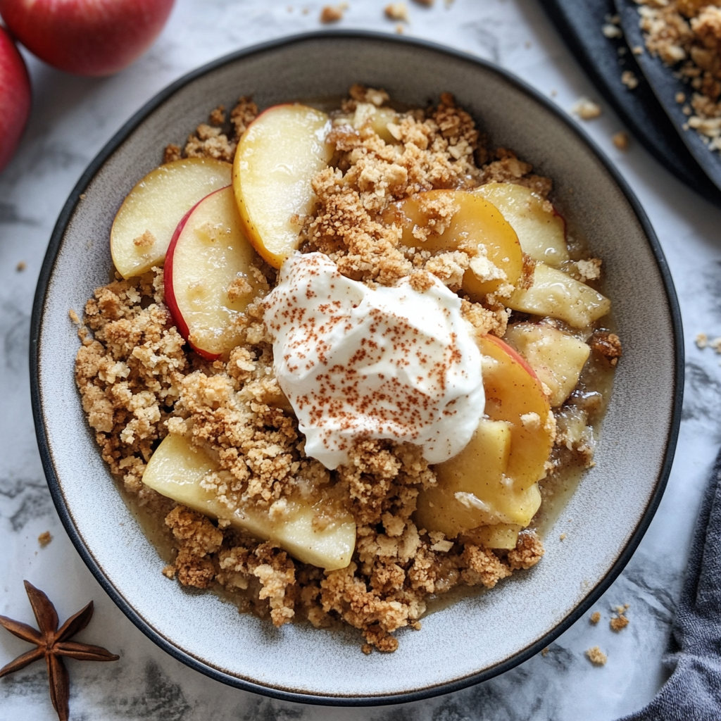 - Enhance the sweetness by drizzling a rich vegan caramel sauce over the crumble before serving.