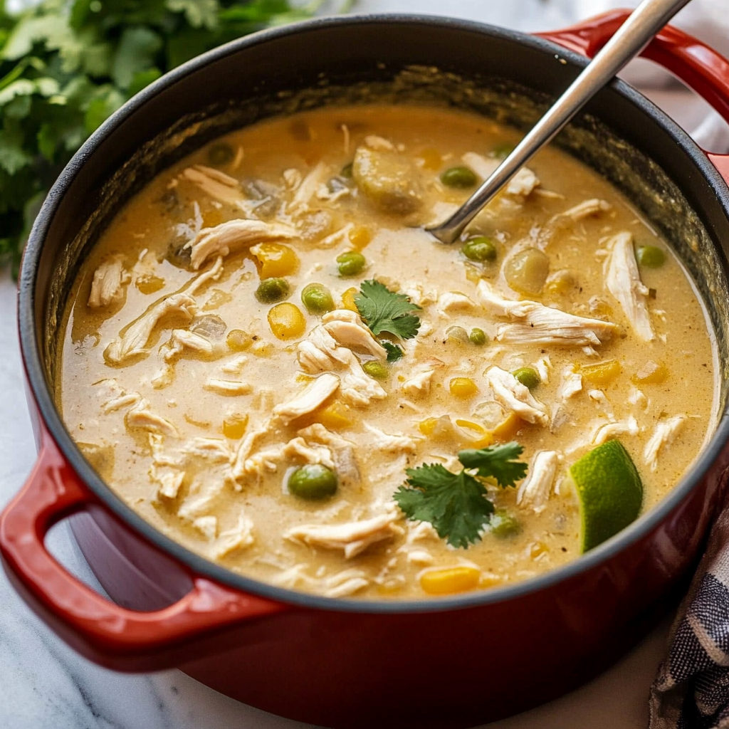 Indulge in the comforting warmth of this White Chicken Chili, a creamy and flavorful dish perfect for any occasion. Made with tender shredded chicken, white beans, and zesty green chilies, this chili is both satisfying and nutritious. The rich broth, thickened with cream cheese and seasoned to perfection, makes it an ideal choice for family dinners or gatherings with friends. Enjoy the versatility of this recipe by customizing your toppings or pairing it with cornbread for a delightful meal experience. Whether prepared on the stove or in a crockpot, this comforting chili is sure to become a household favorite.